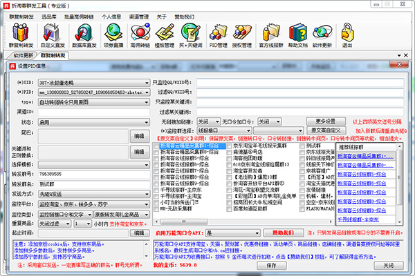 群复制转发、自定义直发、数据库直发、批量高佣转链、店铺链接转链、官方活动转链、淘礼金选品和创建、官方云线报群采集等