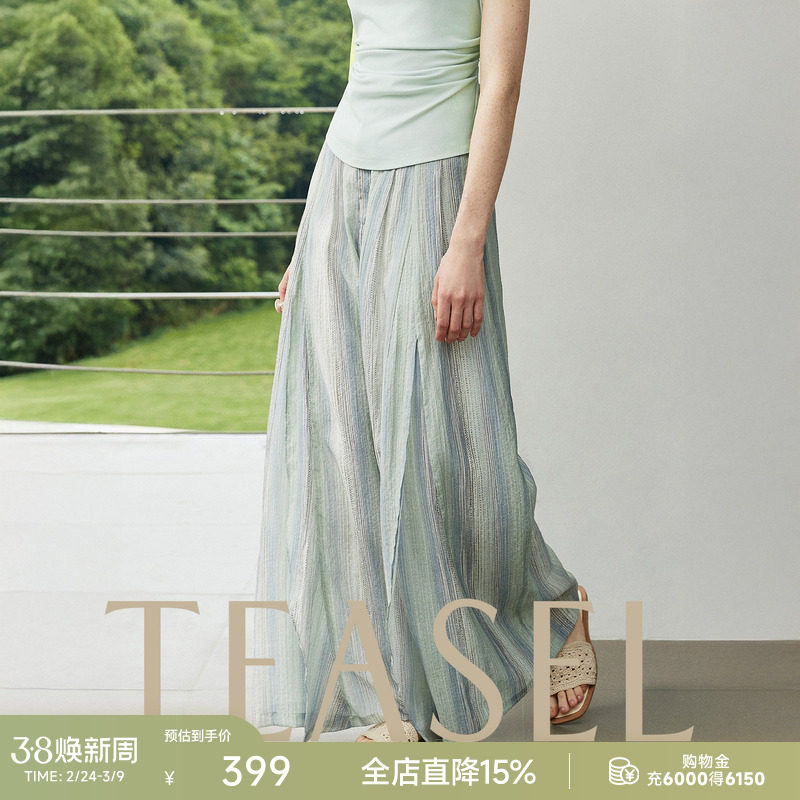 TEASEL「步步生花」轻量微透呼吸感高密网纱垂感立裁花瓣阔腿长裤