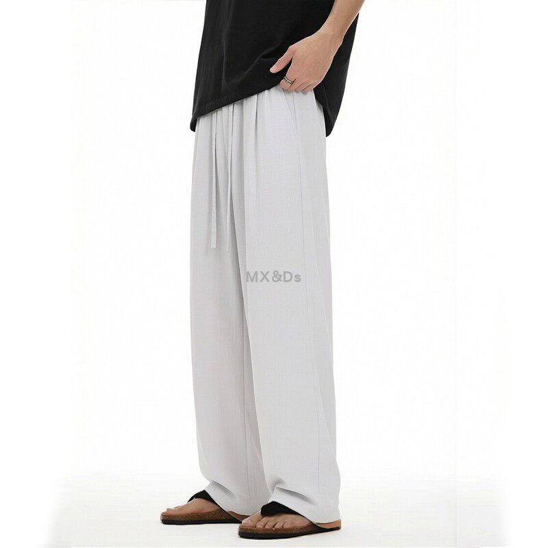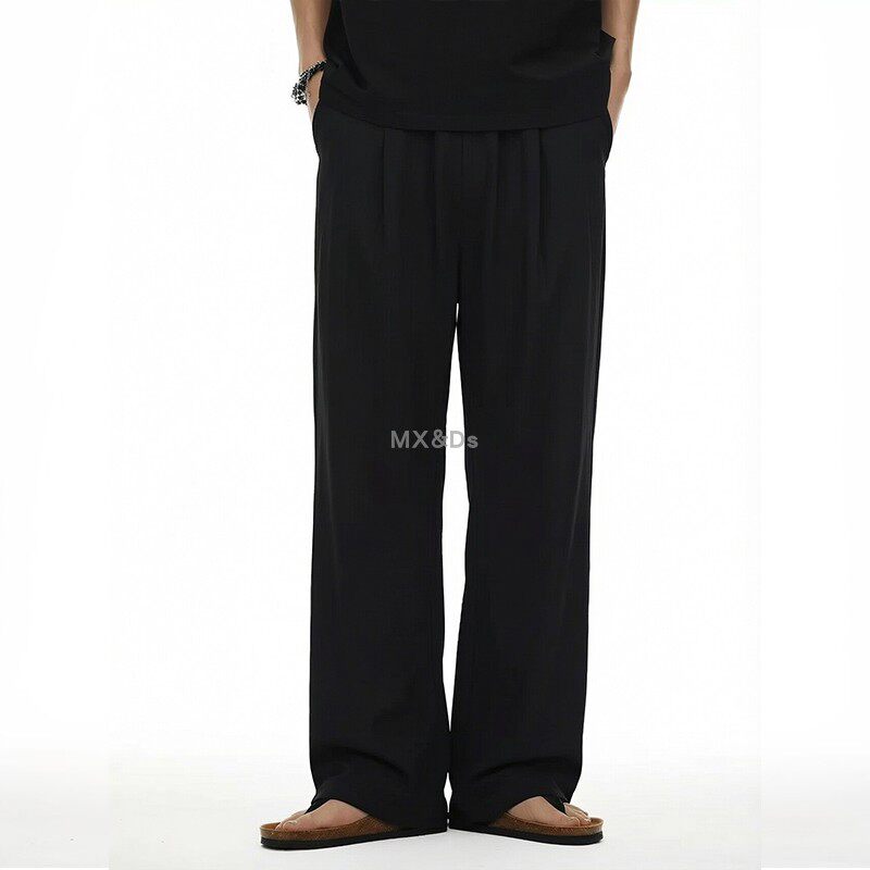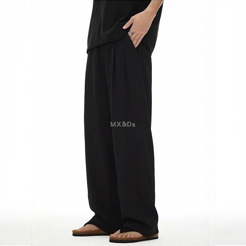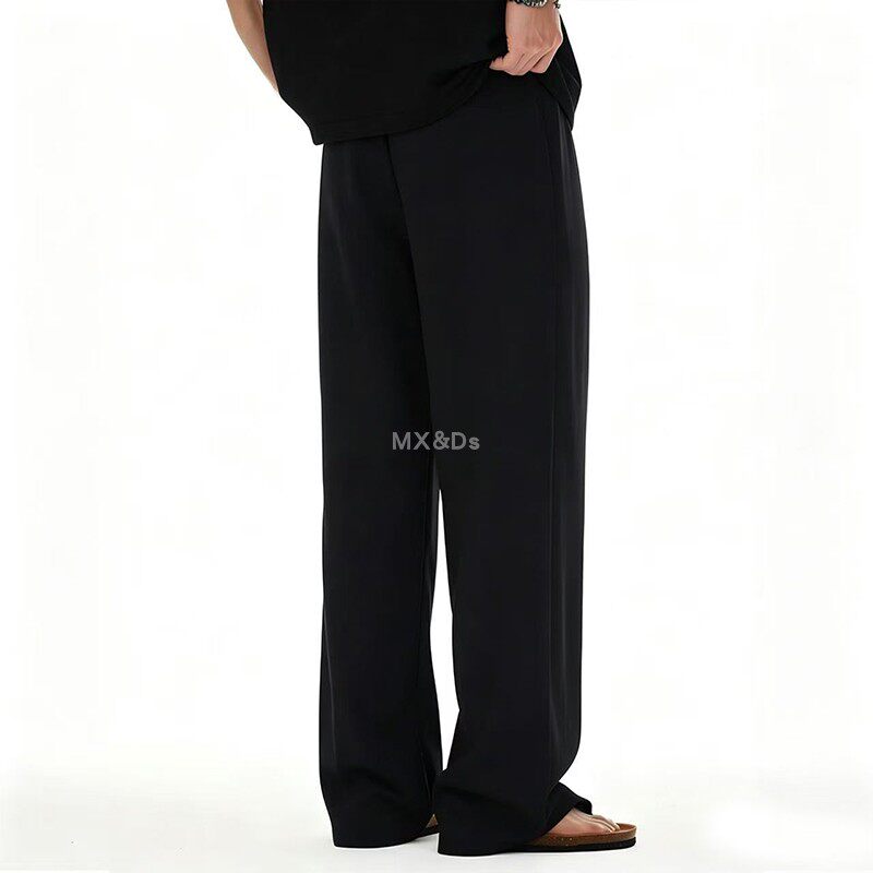 夏季薄款凉感简约休闲西裤黑色直筒阔腿裤男士宽松垂感长裤百搭